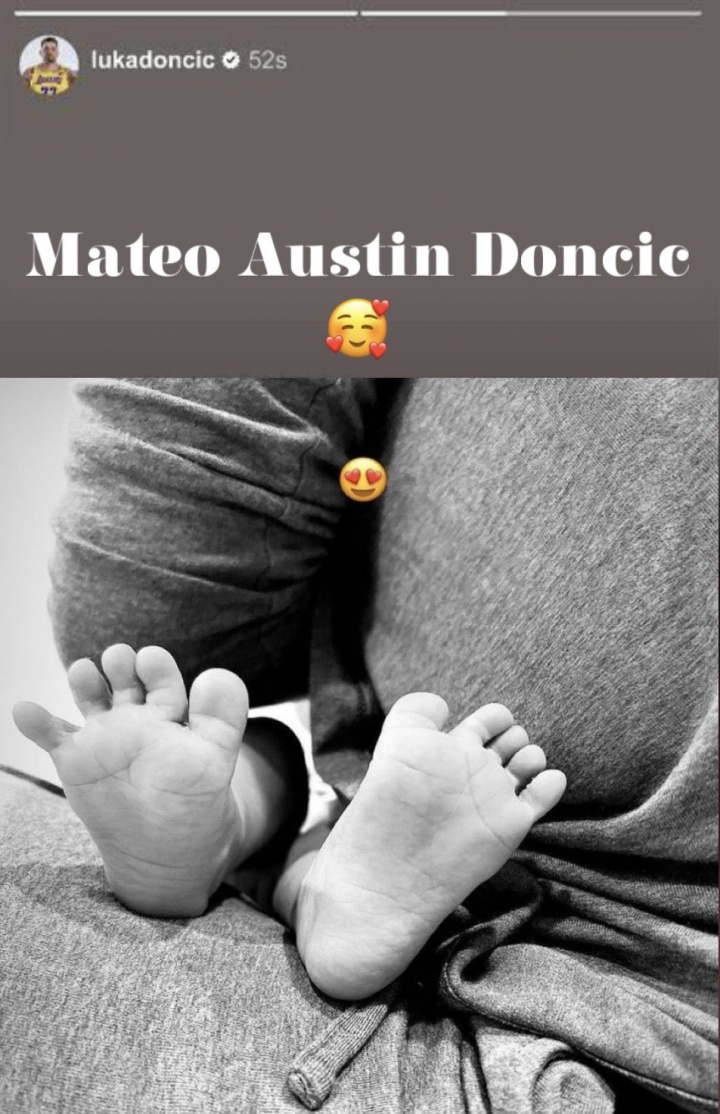 今日东契奇更新社媒晒出了自己第二个女儿的名字:“Mateo Austin Doncic(马特奥·奥斯汀·东契奇)”