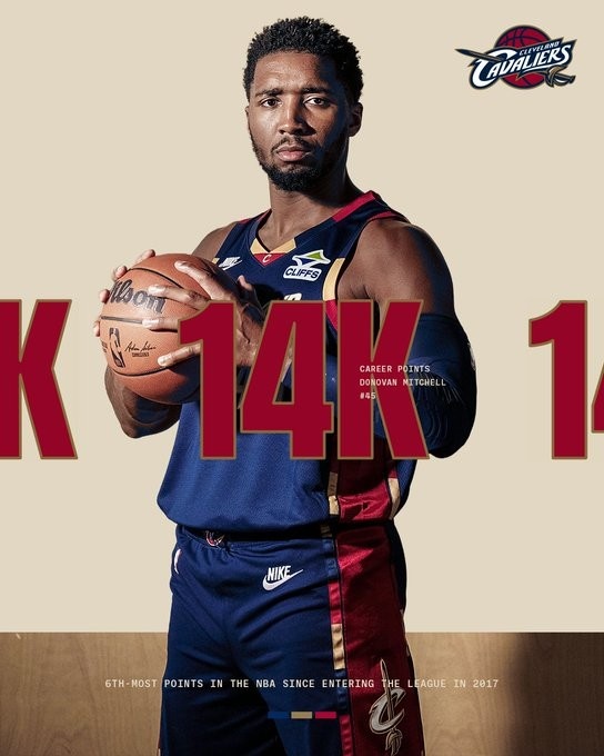 上半场米切尔拿到8分,生涯总得分突破14000。