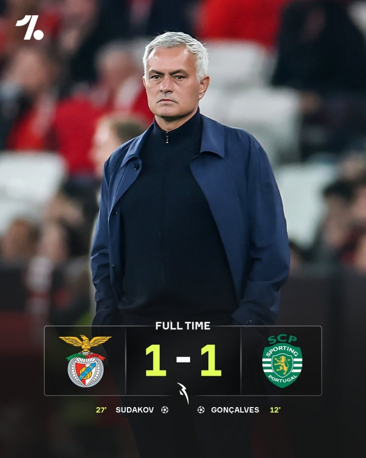 12月06日讯 葡超第13轮先赛一场焦点战,第3的本菲卡主场1-1战平第2的葡萄牙体育,两队仍居第3和第2。