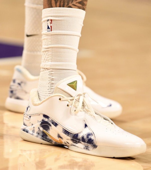 重回洛杉矶的安东尼·戴维斯脚穿勒布朗22球鞋进行热身。