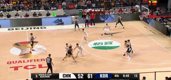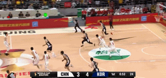 7强侧挡拆调出周琦,张镇麟篮下补位,弱侧blind pig找李贤重,张镇麟上扑不够(不够尊重)