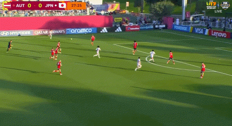 伤停补时2分钟。上半场比赛结束,奥地利U17暂0-0日本U17。